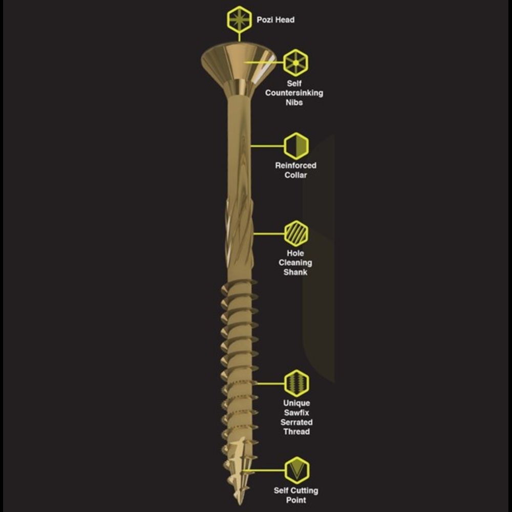 Hevey supplies a wide range of screws, ideal for small DIY projects, as well as big commercial jobs. The selection includes screws designed to suit different materials in a variety of lengths, diameters, and drive types. Explore our range of Drywall Screws, Woodscrews, Roofing Screws, Decking Screws, and Concrete Screws.